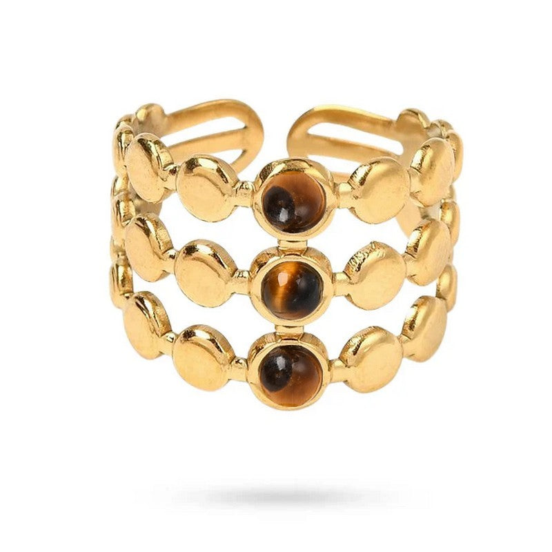 Treat yourself to natural elegance with this women's stainless steel ring, set with three natural tiger's eye stones. Its balanced... Read more