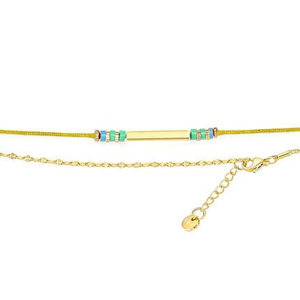 Splendid jewelry for women - Double yellow cord bracelet & gold chain. Small blue/green beads & its golden tube. Dimensions:... Read more