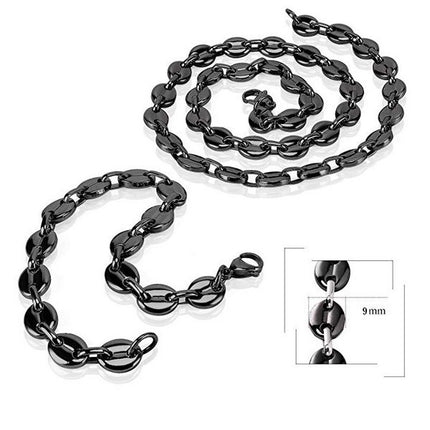 Men's Jewelry - Magnificent set in 316 Steel, composed of an anthracite-colored coffee bean mesh necklace and a matching bracelet.... Read more