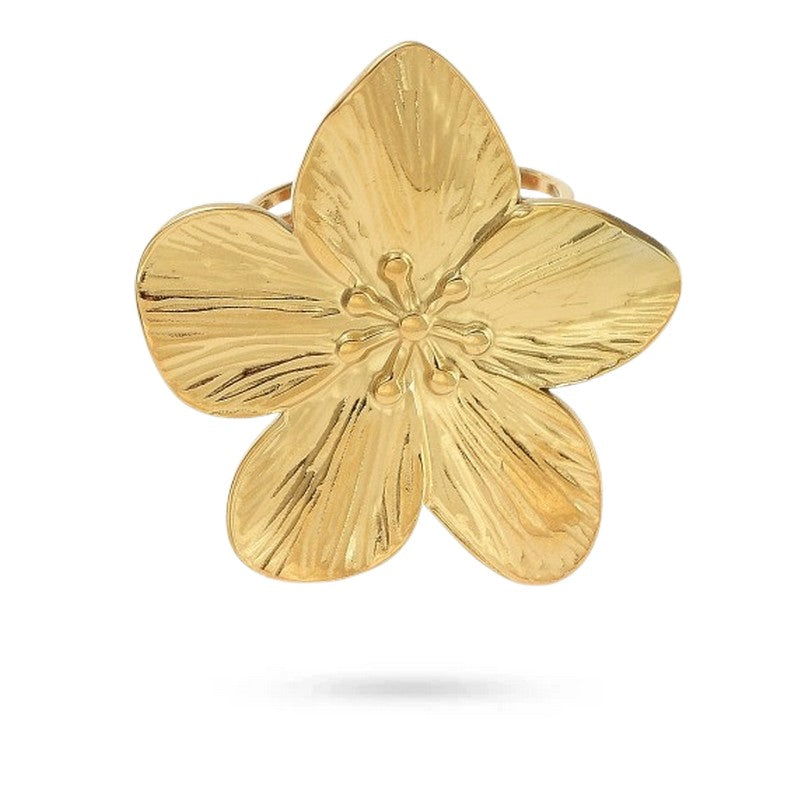 Anillo de flor de acero inoxidable bañado en oro