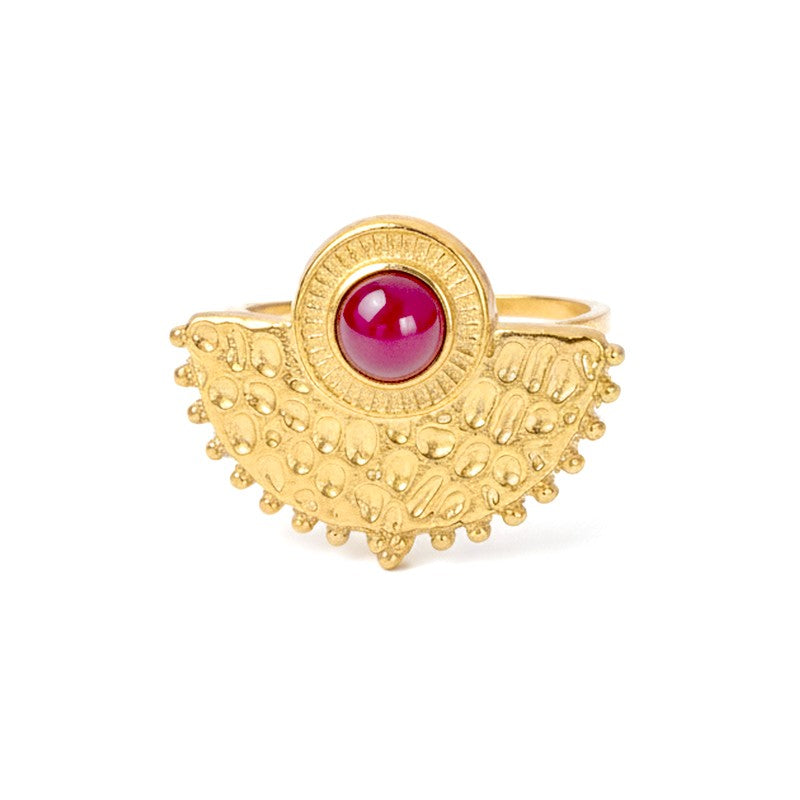 Anillo solar de acero inoxidable con piedras de ágata roja natural