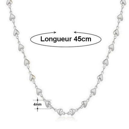Juego de 6 cadenas de collar con corazones pequeños bañados en rodio