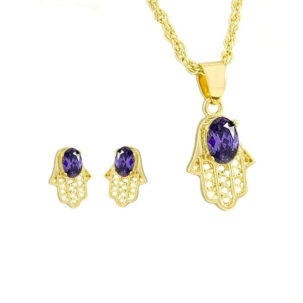 Conjunto colgante y pendientes - mano de Fatma diamante cz morado
