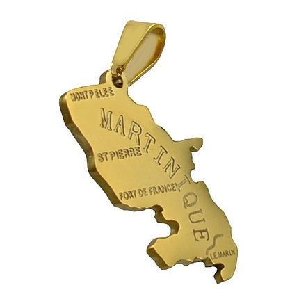 Precioso colgante dorado en Acero 316, representando Martinica. Colgante vendido sin cadena. Dimensiones: 1,9*1,1 cm Precio de reventa recomendado de... Leer más...