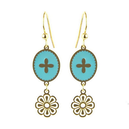 Boucles d'oreilles acier inoxydable tombante émail bleu avec chaînette