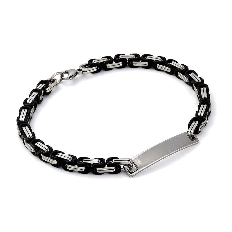 Bracelet gourmette en acier inoxydable 316L affichant une chaîne byzantine robuste et élégante. La plaque gravable intégrée permet une personnalisation... En savoir plus