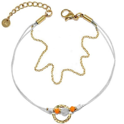 Splendide bijou pour femme - Bracelet triple rangs couleur gris & doré . Anneau acier doré marteler accompagné de pierres... En savoir plus