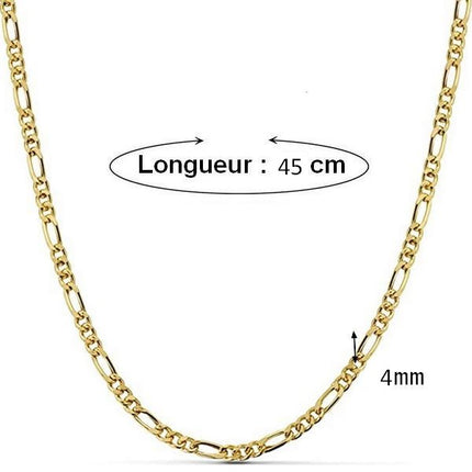 Chaine acier maille figaro couleur or - 45 cm - 4 mm