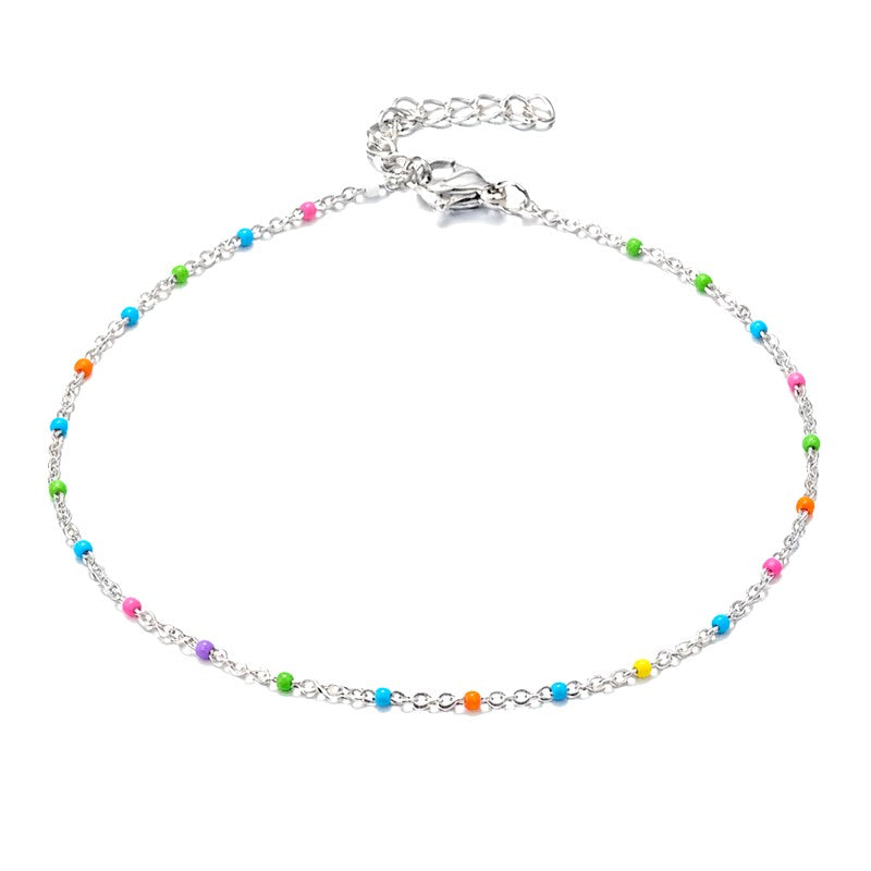 Chaîne de cheville acier inoxydable émaillé multicolors