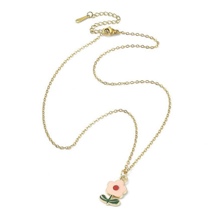 Chaîne collier acier inoxydable fleur rose