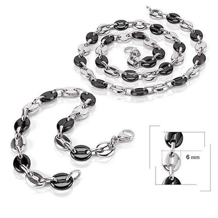 Parure pour Homme - Grain de café ( 6mm ) - Couleur Noir-Gris