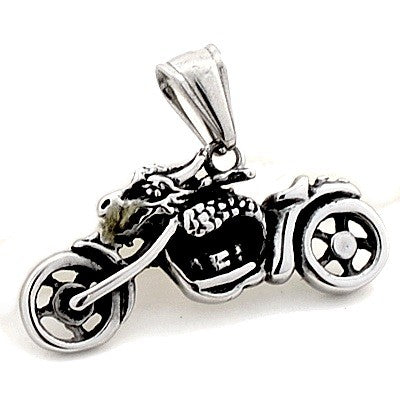 Pendentif acier 316 argenté Gothique Rock ou Biker - Petite moto tête de mort