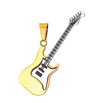 Pendentif acier 316 doré Gothique Rock ou Biker - Guitare très chic ciselé