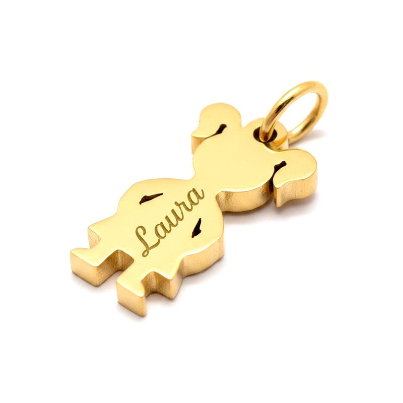 Pendentif breloque acier doré à personnaliser petite fille gravure offerte